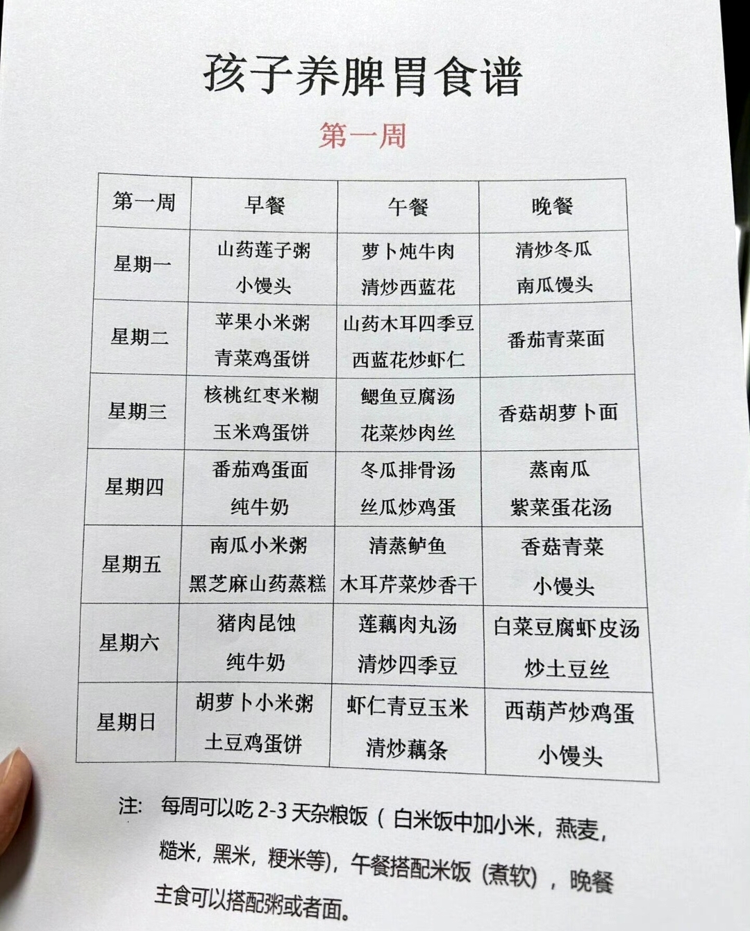 4周养脾胃食谱